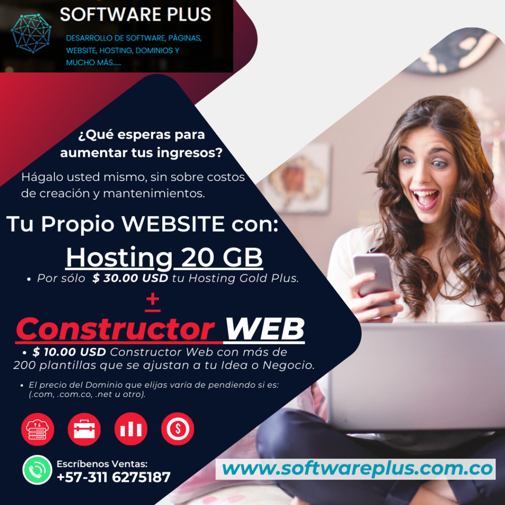 Nosotros como SOFTWARE PLUS hemos diseñado múltiples planes, con las actuales y mejores herramientas tecnológicas y de servicios a tu medida, que te ayudaran a mejorar tus ideas y negocios.